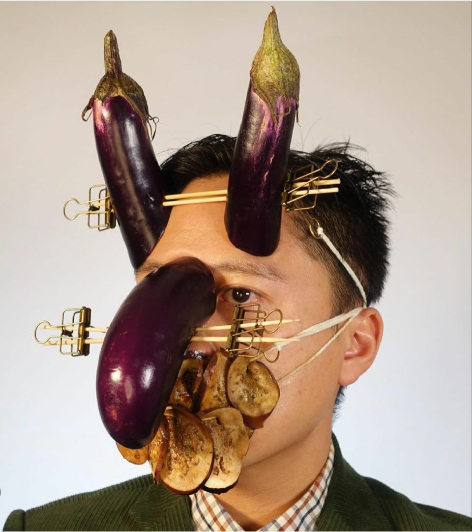 Yes, here masks, goggles and helmets are made out of meals. The project began in the early days of the lockdown in New York City while the COVID-19 cases were spiking, everything was shut down. While everyone thought an “ Ideal mind is a devil's workshop” The New York artist and art professor spent every day of the pandemic making his food into face masks and posting them on his Instagram account, Foodmasku.