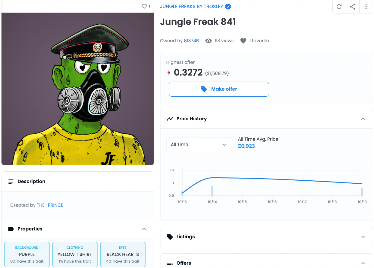 Unsurprisingly, given the tone, the disclosures made in the article and the creators’ stated intentions about how to move the project forward, much of the anger subsided, but it wouldn’t be enough to resurrect Jungle Freaks to its former glory. Many collectors lost thousands, and in some cases, tens of thousands of dollars with the crash in floor price, which serves as a reminder of how volatile the NFT space is. I’m certain that some collectors were first-time buyers with this project and may look at the space differently after having suffered significant losses. Buyer beware.