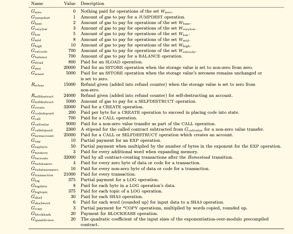 Below you can see Ethereum’s yellow paper explaining various operations and unit relations.