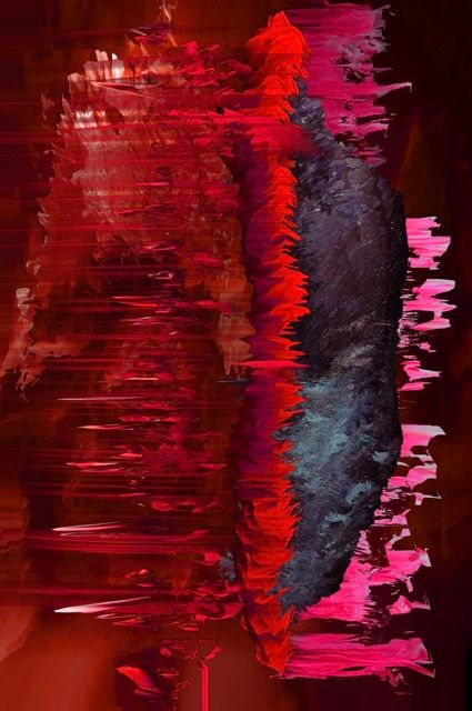 What’s striking about these works is that the results of cold, mathematical glitching can yield soft, warm art. Many BURNERs appear to have horizontal brush strokes of ruddy oil paint. Since the work is dynamic, one gets the idea of a amorphous gas cloud that is never at rest. At the same time, the works look nothing like the original cloud images that were glitched to create the BURNER series. Thus, crashblossom has taken the organic, obliterated it, and yielded something digitally organic. It’s a fascinating contradiction.