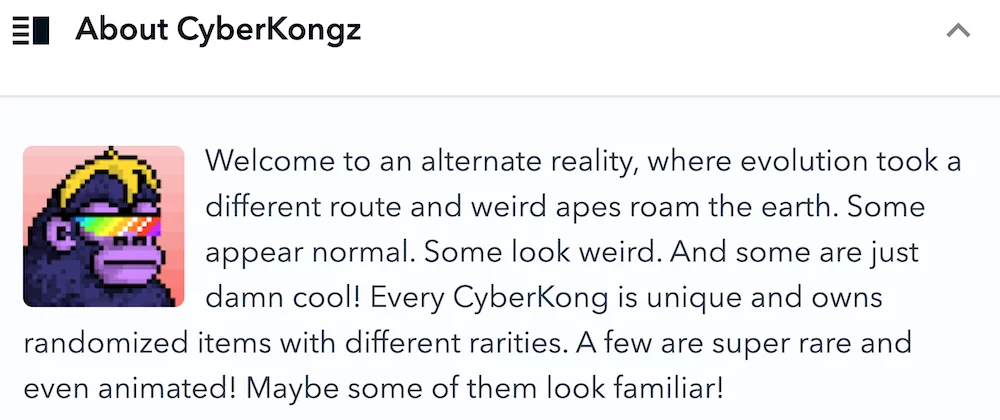 It’s tough for me to be sure which of these came onto the Larva Labs Discord scene first. I’ve seen it raining cats, Aliens landing, Gorillas uprising. Seriously, like half of the regulars in Punk Discord chat suddenly have CyberKongz for avatars! It’s been good times, so let’s see what some of these fun projects are about.