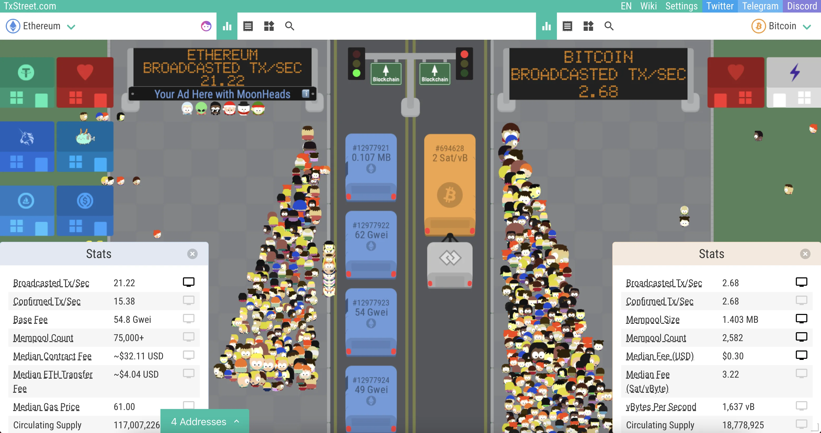 We built our first crypto project, TxStreet, to help newcomers understand the wonderful and liberating new technology of blockchains, in a fun visual way. Released in 2018, our transaction visualizer allows users to view real time activity on various blockchains, track their transactions, track gas prices, and learn about various projects through curated tid-bits of information. It wasn’t long before the creator of Ethereum himself became a fan of us...
