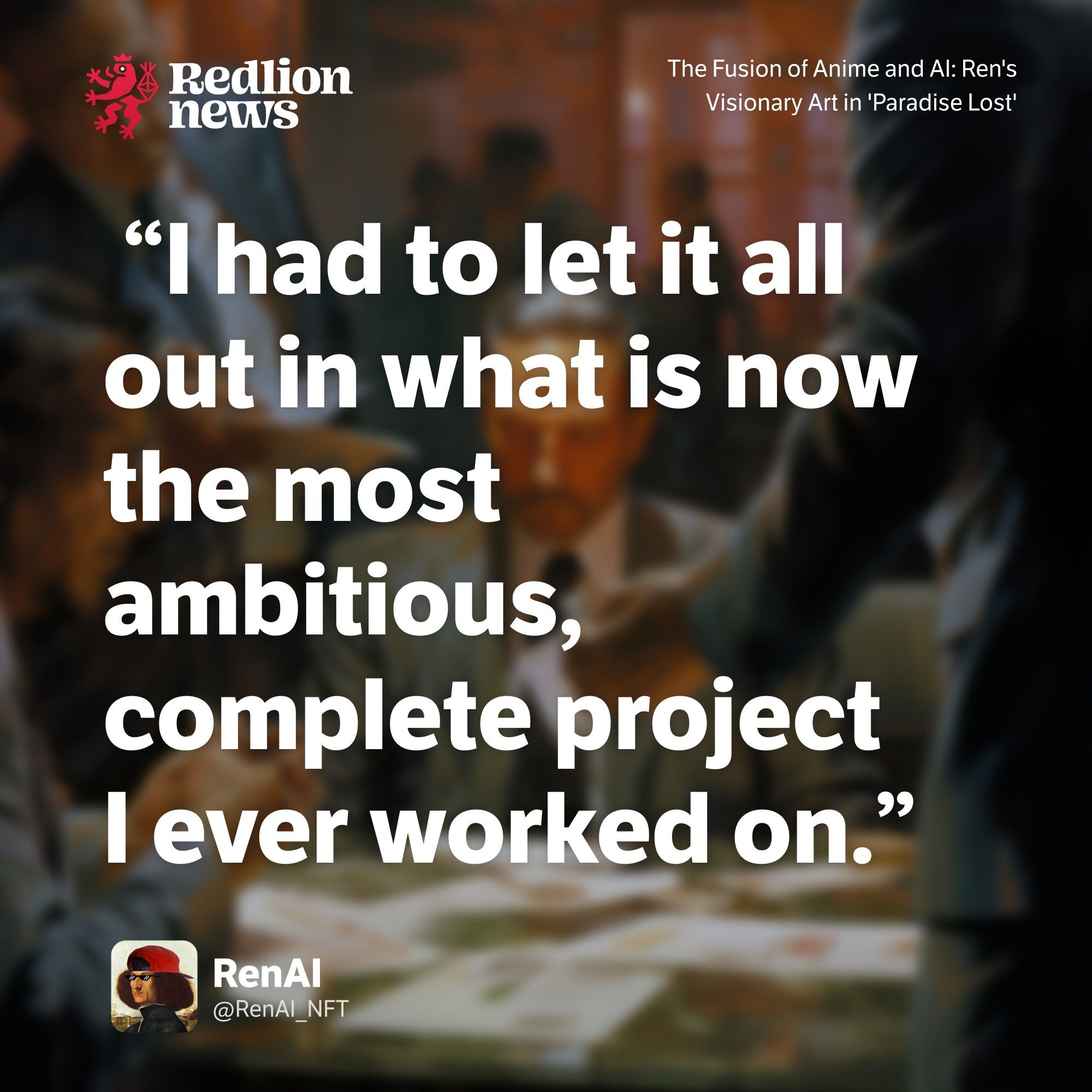 "Paradise Lost" represents a groundbreaking intersection of anime and AI, a narrative-rich art collection crafted by the visionary artist Ren. Launching on BrainDrops, this series is not just a collection of digital artworks but a journey into a unique cyberpunk universe. It reflects a blend of modern technology and traditional storytelling, drawing anime enthusiasts and art collectors into a world where imagination meets artificial intelligence.