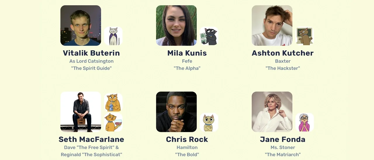 The first of its kind, series âStoner Catsâ starring Mila Kunis, Jane Fonda and Ashton Kutcher are made even more special by introducing Vitalik Buterin, the co-founder of Ethereum playing the role âLord Catsingtonâ!!