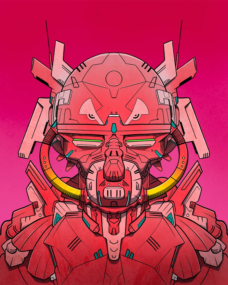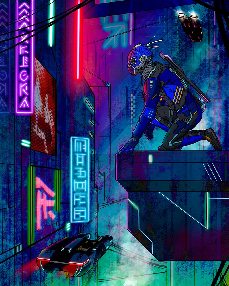 Working in 2D, Zakalwe_x loves to explore sci-fi themed art. A colourful bold graphic style brings his creations to life, from his ongoing PUNX series to the Space Reavers collaboration with the ETH-MEN. Zakalwe loves to delve deeper into the storylines around the characters and worlds he creates, giving them a greater depth over time.