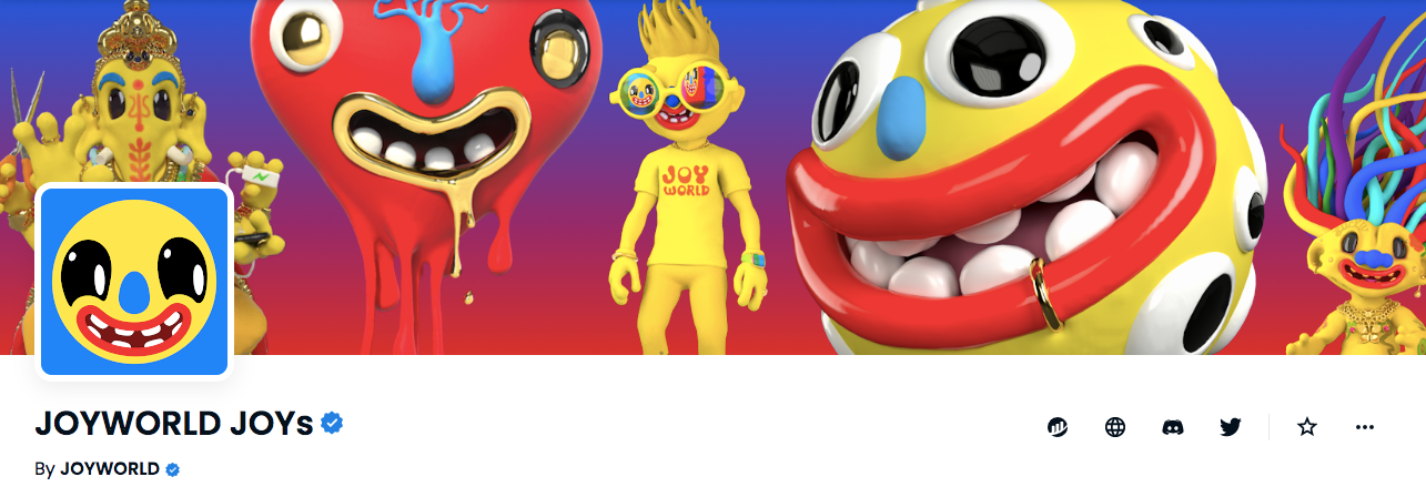 All NFT projects nowadays promise extensive roadmaps, but few are as ambitious as JOYWORLD. The project aims to build a happy matrix - a Metaverse focused on bringing joy. Each NFT already includes a Multi-Dimensional file that makes it easy to use across different parts of the Metaverse. Few projects can boast of their own lexicon but JOYWORLD has coined several phrases including Pronoia (the opposite of paranoia - a sensation that the world is transpiring to make you happy), InterJOYmensional (a joy so strong it bends spacetime) and Super Slimey Smile (a smile so contagious it makes others happy). This language will expand as the world does, along with continuous updates and “treats.”