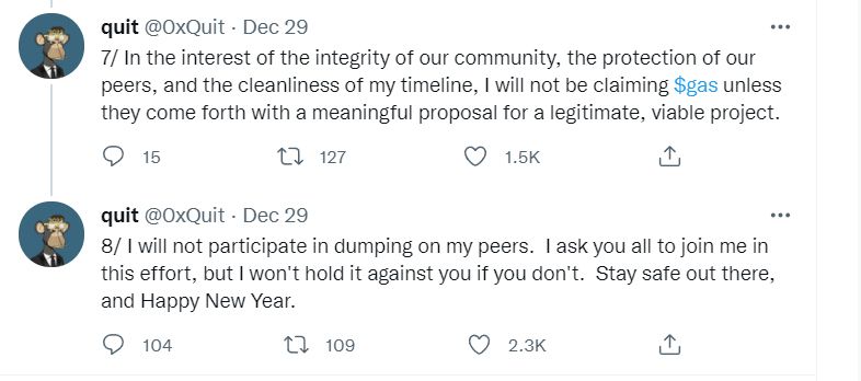 So with all this in mind, how viable are these drops? There seems to be a lot of questions about devs and how much money they make in short periods. It goes without saying that we will certainly be seeing a lot more of them in 2022 that's for sure. But is this a good thing for the community overall? With $SOS you're talking about an unaffiliated non-doxed group creating something around one of the most used NFT marketplaces on the planet rewarding existing users with airdropped tokens. You really can't go wrong with that. In the case of $GAS, you have outside devs cooking up a project that certainly sounds good when you read the roadmap: