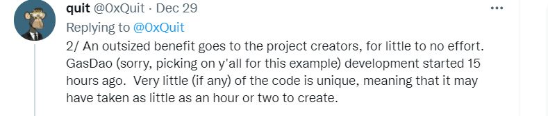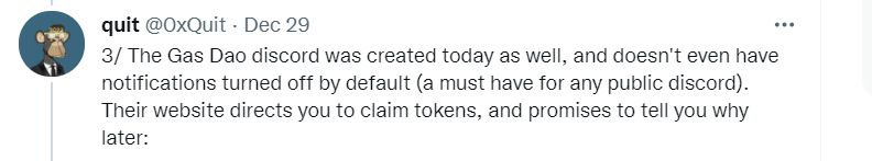 Well it's certainly been an eventful week in the NFT community at large (it always is really) with OpenSea airdropping $SOS to great fanfare and praise last week and now the absolute skyrocketing of $GASDAO overnight. The Twitter sphere was set on proverbial fire with the drop on December 28th by @saedmyster (Bobby Axlerod) and his team. In fact the token blew up so fast that the team seemed to be in a mad scramble to answer the community's slew of questions.
