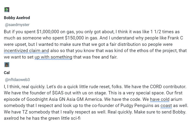 It was nothing if not a mixed bag across the board for sure and it looks like there will be some explaining to do based on people's input. Within the Discord there was running a rhetoric about $GAS costing more GWEI than the token is worth. That to me would point to a host of people having completely missed the point of a governance token. Sure you can't stop people from gambling with governance tokens, there will always be traders out there looking to pump and dump anything perceived as viable they can get their hands on. But perhaps a bit more clarity up front could have cut this off at the pass.
