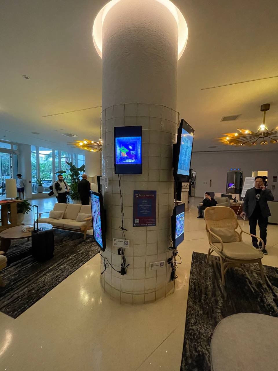 While Art Basel Miami was a celebration of the convergence between traditional art and cutting-edge technology, an unexpected focal point emerged: a pole displaying art on a small screen, part of a Tezos art event. This unconventional presentation sparked a mix of surprise and criticism, with some attendees deeming it a low-effort display that didn't quite fit the grandeur of the event.