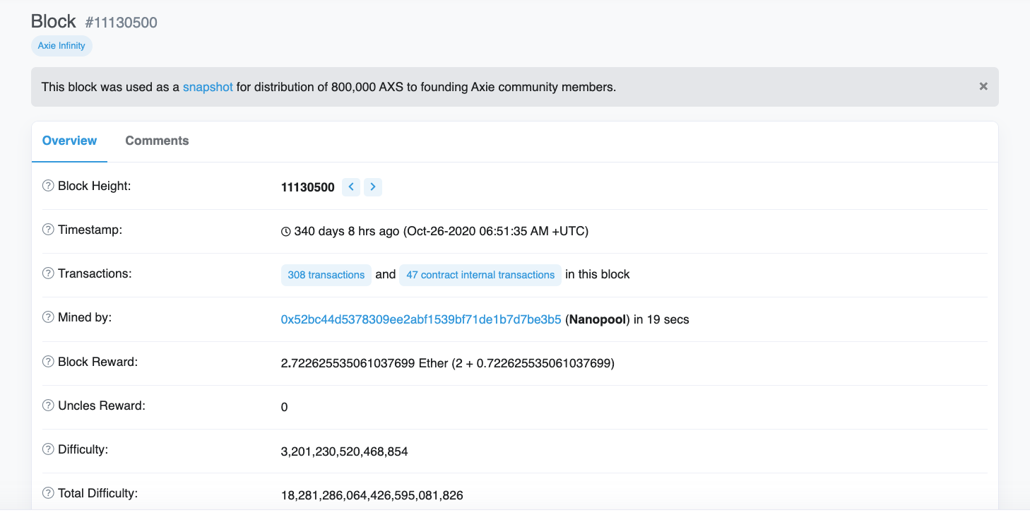 Retroactive Airdrops are something of a known Alpha especially for those projects without Tokens during launch. On October 26th 2020 Axie Team took a snapshot of the Ethereum Block #11130500. Earlier they had announced that there will be a gift for approximately 10,000 founding members. In the current evaluation, that’s over $76 million, distributing 800,000 AXS tokens fulfilling their commitment nearly a year later representing it to be a truly community-owned game.