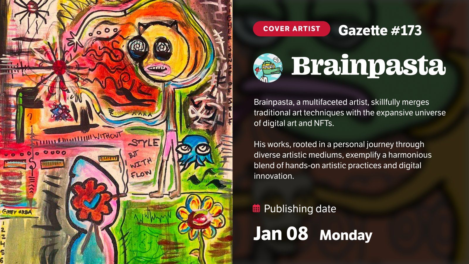 Renowned for his unique blend of traditional mediums and digital innovation, Issue 173 will encapsulate Brainpasta's artistic evolution, from his roots in physical art forms to his groundbreaking digital vision.