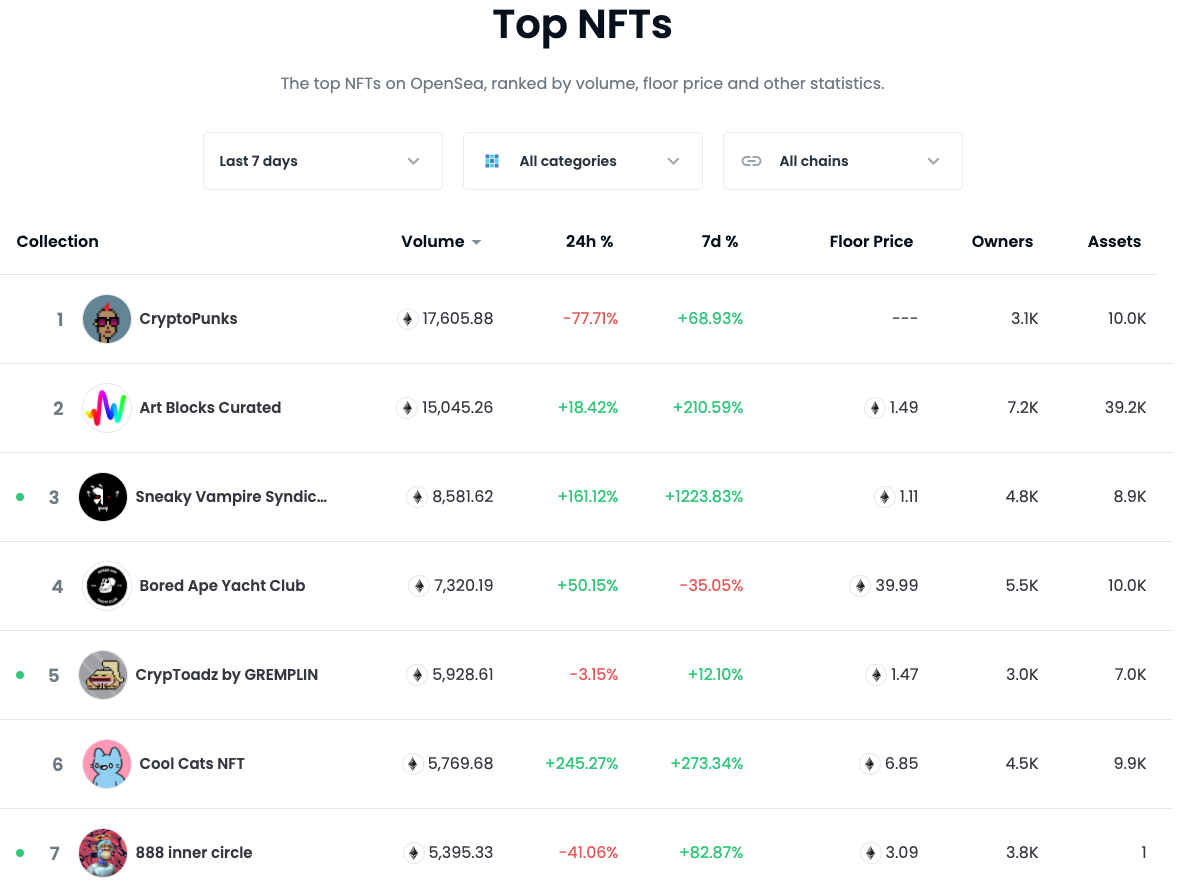 That has worked incredibly well for them as it ranks No.5 on the 7-day trade volume on the Opensea.
