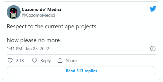 Here’s where the FUD alarms go off. I brought up MAYC earlier because, A, I respect the hell out of them; B, they’re dART from the original art project; and C, they’re tough enough to handle a little criticism without crumbling at the seams. Not all projects fit those criteria, so I’m not going to mention any by name, but do your own due diligence. In fact, tattoo that on the inside of your eyelids because all of this is highly speculative (more on that later). Here is a list of rules you should follow:
