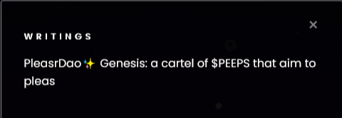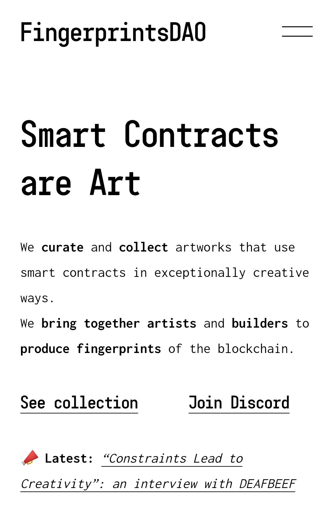 The DAO collaborates with creators to build experiments at the intersection of art, economics and social coordination. Fingerprints have the 3rd largest collection of Autoglyphs, the largest collection of DEAFBEEFs, one of the largest collectors of Mutant Garden Seeders and other significant pieces.