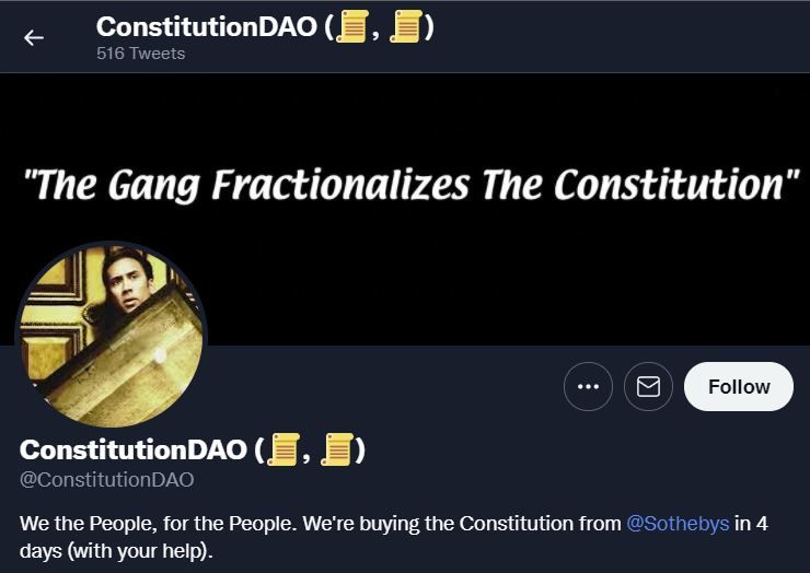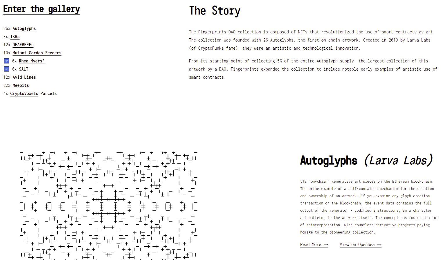 Our final category for this week, and clearly the least known, is DAO tokens. DAOs, or decentralized autonomous organizations, offer members a collective experience in line with that organization’s broad mission. For some DAOs, such as Fingerprints, that involves acquiring valuable and historic works of NFT art like Autoglyphs. For others, like the recently-formed ConstitutionDAO, it revolves around a singular point of focus, like acquiring a copy of the U.S. Constitution at auction, or creating a community of members that can offer unique services or insights to one another, such as Friends with Benefits (often referred to as just FWB). To be clear, most DAO tokens can be acquired through decentralized exchanges or through swaps, even without formally becoming a member.