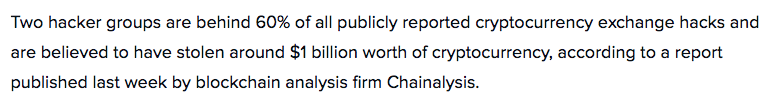 Imagine a pair of hacking groups so powerful that they’re responsible for a staggering 60% of all exchange hacks - around $1 billion. Virtually nothing is known about these two groups other than that Alpha is the bigger and takes more care hiding its funds (sometimes via up to 15,000 transactions). It’s thought to be a vast, centrally controlled group with the scope for huge and coordinated attacks. Beta is more disorganised and purely focused on money. It also holds stolen funds for longer (sometimes up to 18 months until the heat dies down) whereas Alpha cashes out much faster. It took an extensive Chainlink investigation to uncover even these details, and that’s where the trail ends.