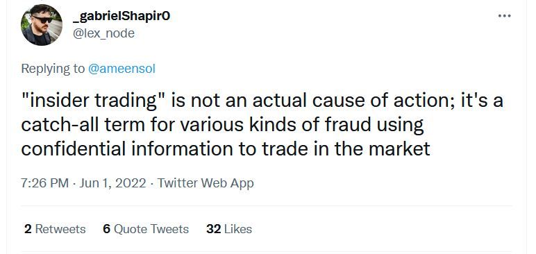 The NFT community, as it often does, expressed a wide range of opinions on this. Many were not surprised, wondering when they were going to go after all the rugpullers. Speculation about the meanings behind the specific charges of wire fraud and the term “insider trading” also took place. Others worried that this case could lead to something more sinister that broadly affects the NFT space and crypto as a whole.