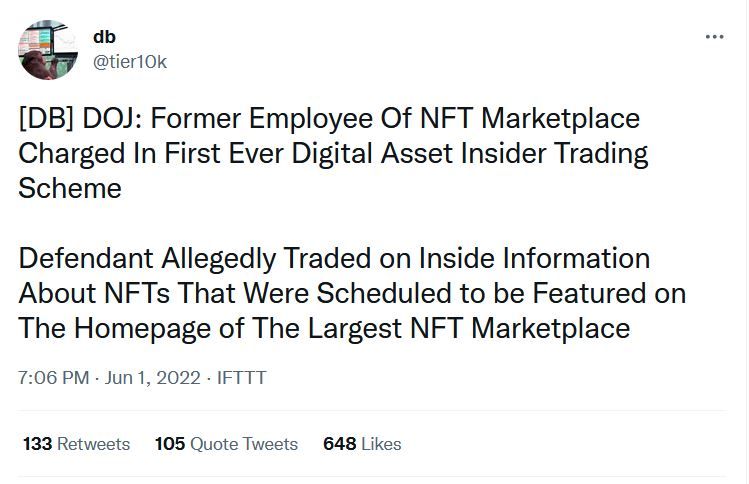 45 NFTs allegedly flipped due to insider trading