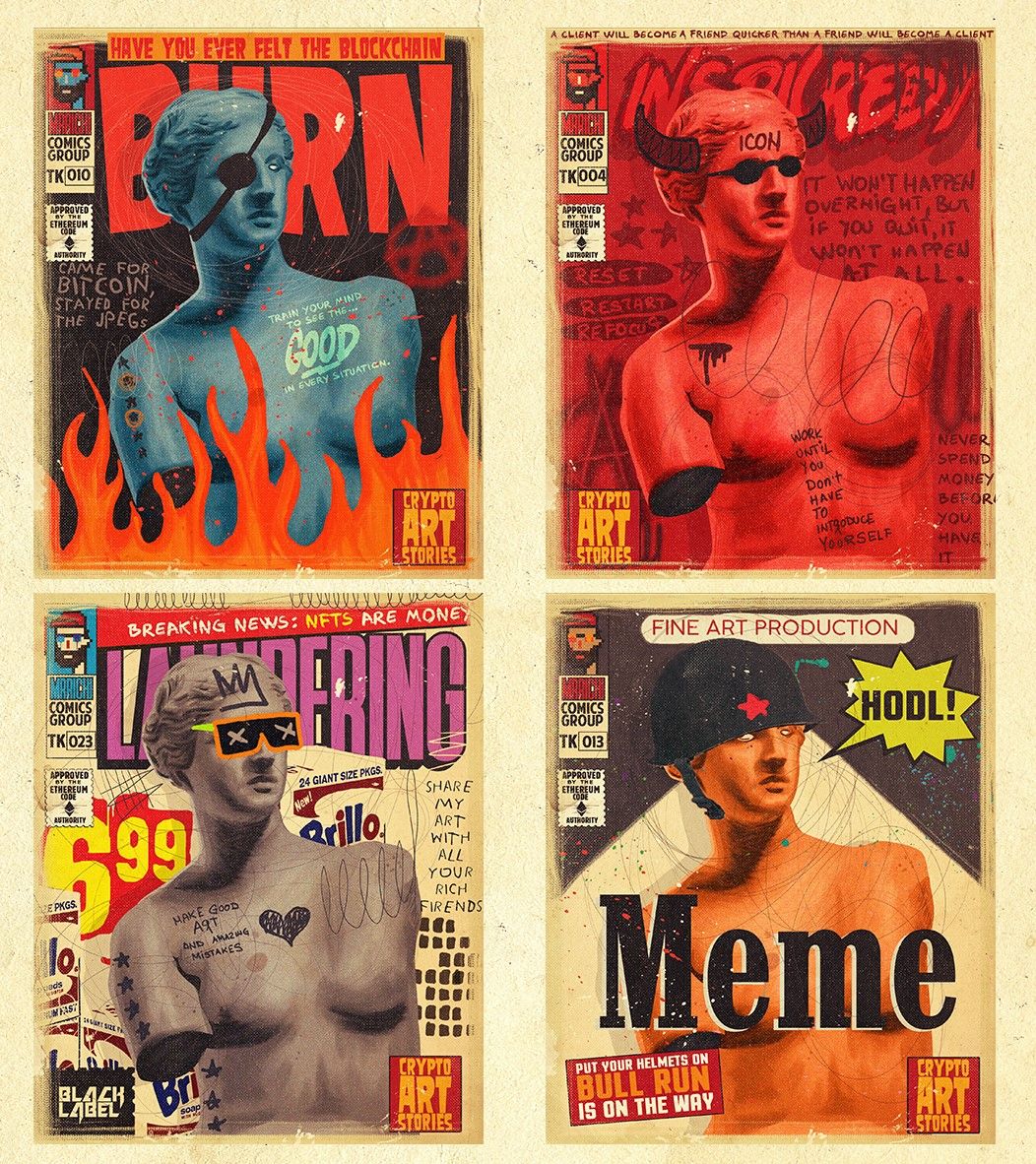 Behind this revolutionary collection is Mr. Richi, a self-taught digital maestro hailing from Belgrade. With roots in graffiti and street art, his works are a blend of rawness and refinement. Whether it's juxtaposing Renaissance paintings with graffiti elements or crafting comic book-inspired pop art portraits, his voice is distinct and powerful. Fans can find his creations across platforms like AsyncArt, SuperRare, and OpenSea.