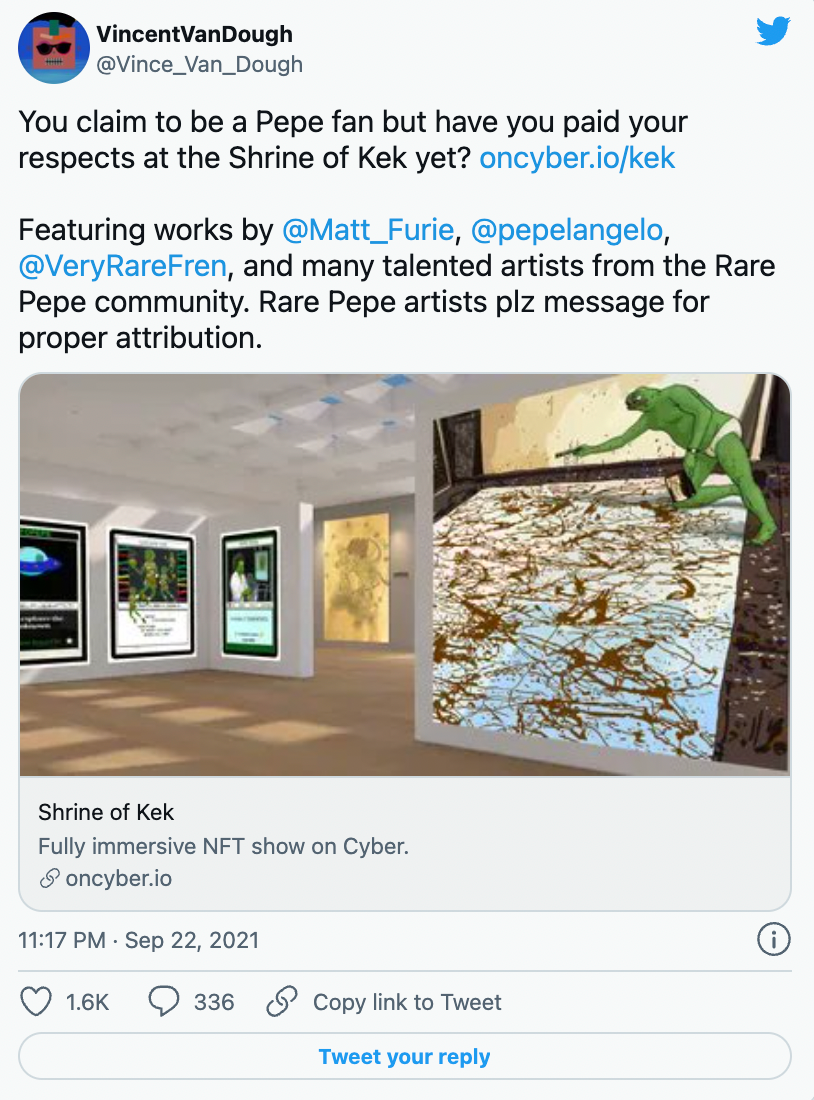 An OG with a diverse collection of historical pieces both online and offline. Collector of many unique works from a wide range of artists. Introduced royalty sharing on his projects and collaborations with artists. Not particularly vocal through social media, but maintains a significant presence with his collection.