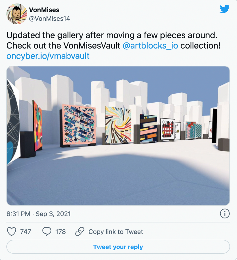 An Art Blocks Discord moderator, Art Blocks curation board member and an overall Art Blocks bull with an incredible gallery in Decentraland.