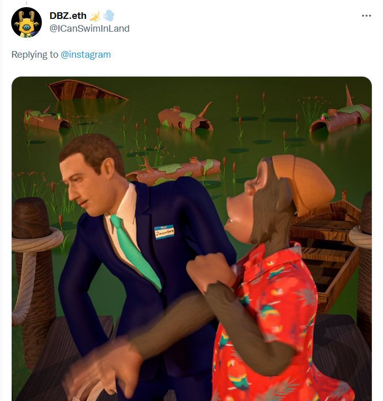 Other responses were negative, saying things like “please don’t do this,” and outside the NFT community, some haters piled on claiming it as an excuse to unfollow or get off Instagram entirely (they won’t be missed). A few got a bit creative with their replies; one shared an image from the NFT collection Tales from the Yacht Club, depicting a Bored Ape smacking Mark Zuckerberg, to express their distaste.