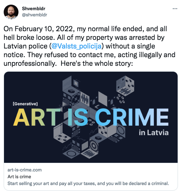 Itâs the kind of horror story that decentralisation and Web3 were supposed to prevent. A popular NFT artist has their property and assets seized and held by the police without explanation. After three long months of confusion and fear, the artist finds out that theyâre being charged with money laundering despite all their transactions being fully public. It sounds dystopian, but thatâs exactly what happened to Shvembldr on the day that his ânormal life ended.â