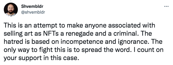 âI act openly and put out all possible data precisely because I have not violated not only criminal laws but also moral laws. I have never bought my art myself or resold it. I did not participate in any schemes. I can justify each of my transactions. I have the transaction reports ready for the police on the website and all of my Twitter and Discord activity from 2021, including personal messages. I'm completely clean, but it would take many resources for the police to verify all this, and I'm afraid they won't do that - it's easier for them just to accuse me. That's why I went public with it. The investigation must be honest, and this case must become a precedent.â