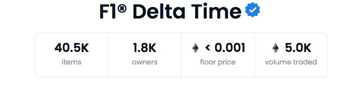Note the floor price - https://opensea.io/collection/f1-delta-time