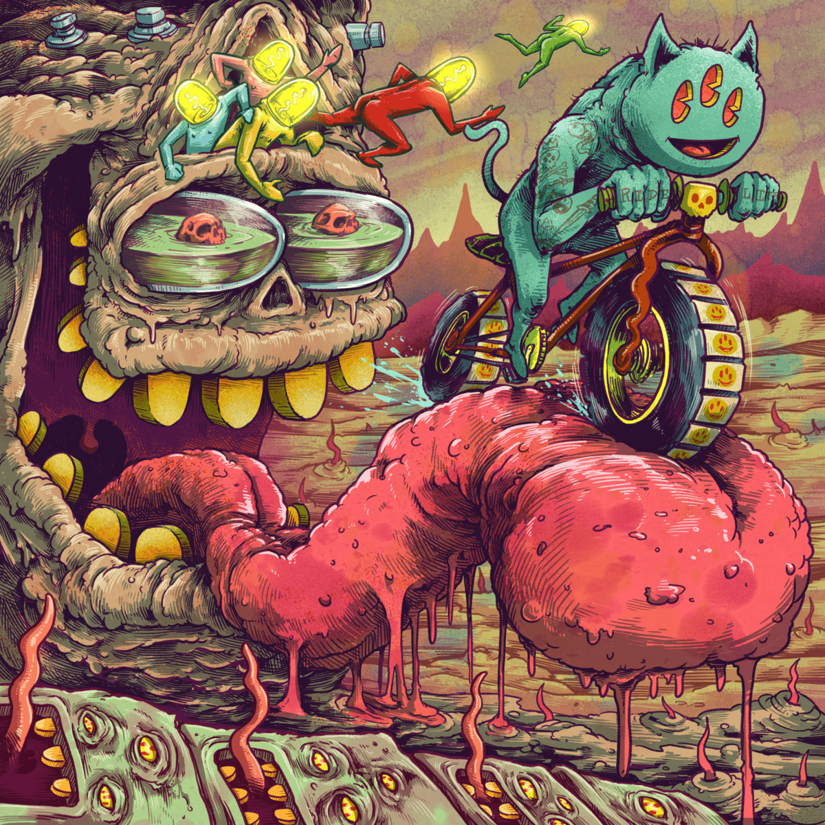 Known for his unique blend of cute and horrific imagery, he first studied fine art before branching out into illustration, apparel design, sculpture, and painting. Today, we delve into the creative mind of this prolific artist as he shares his journey from working in concrete to diving into the world of NFTs.