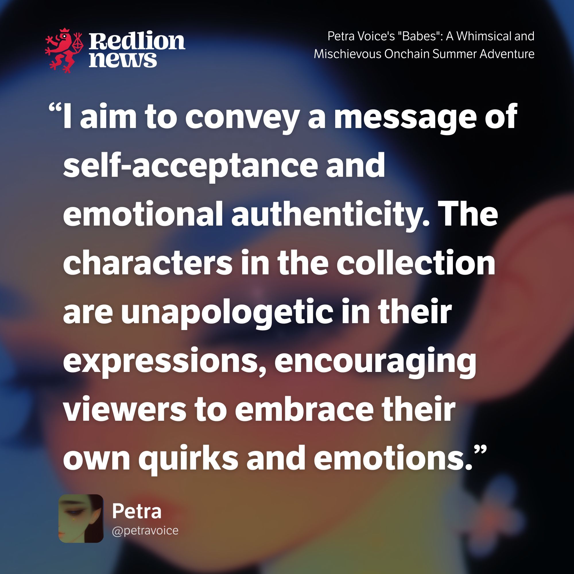 Through "Babes," Petra aims to convey a message of self-acceptance and emotional authenticity, the characters in the collection are unapologetic in their expressions, encouraging viewers to embrace their quirks and emotions.