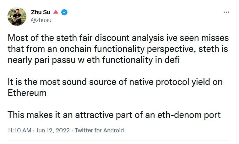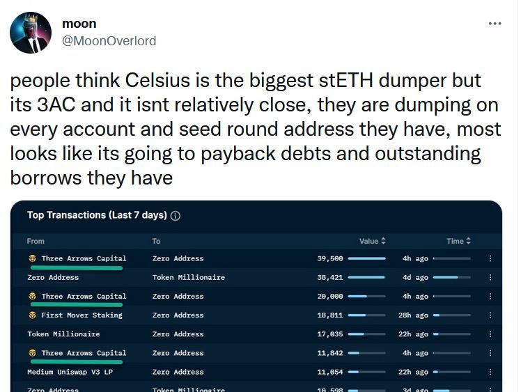 Zhu Su, co-founder of 3AC, also posted an incriminating tweet, playing up stETH on June 12, two days before the wallet transfers took place. Twitter users of the crypto community were quick to point out what appeared to be a classic pump-and-dump scheme.Â