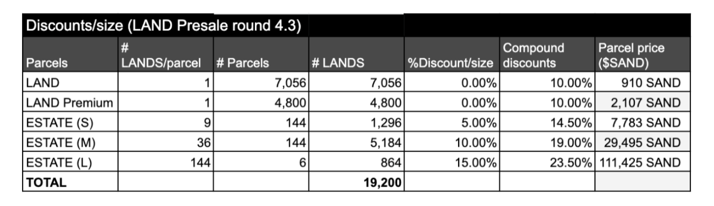 <center>Lots will be available with TSB’s native currency $SAND only.</center>