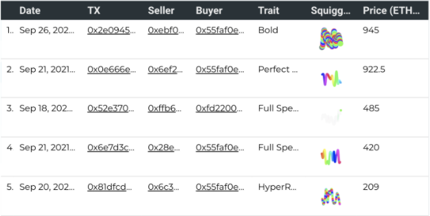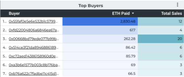 The single largest buyer of Chromie Squiggles this month spent 2,830 ETH on 12 Squiggles.