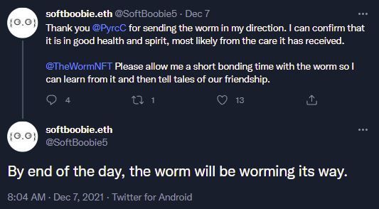 The Worm was then transferred to our second-ever subscriber, @softboobie.eth.