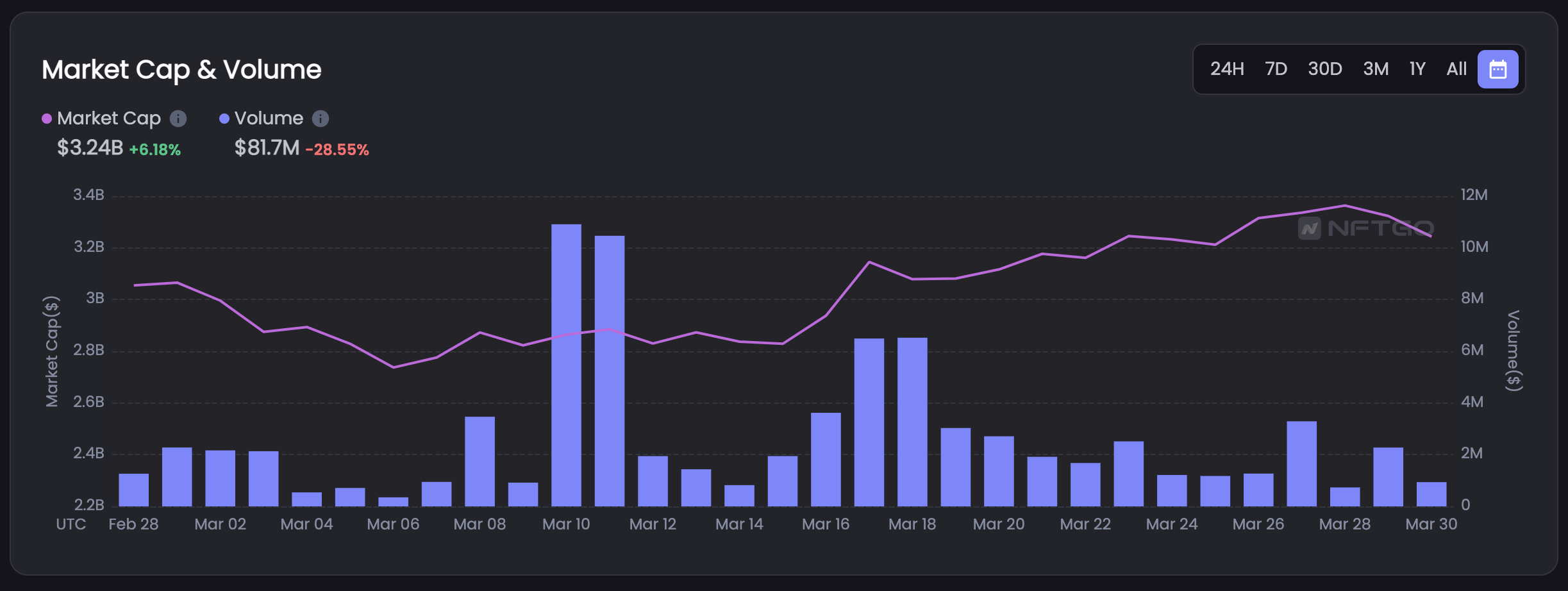 CryptoPunks Market Cap & Volume (in USD) for March 2022
