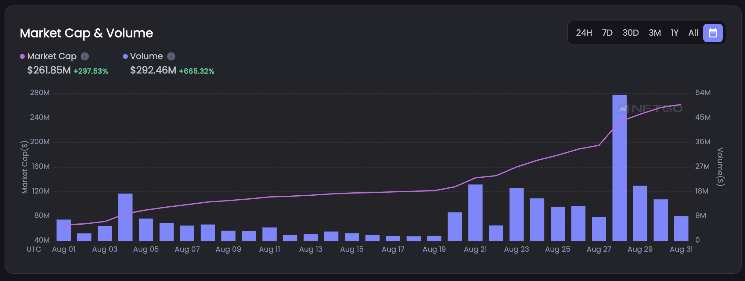 Bored Ape Yacht Club Market Cap & Volume (in USD) for August 2021
