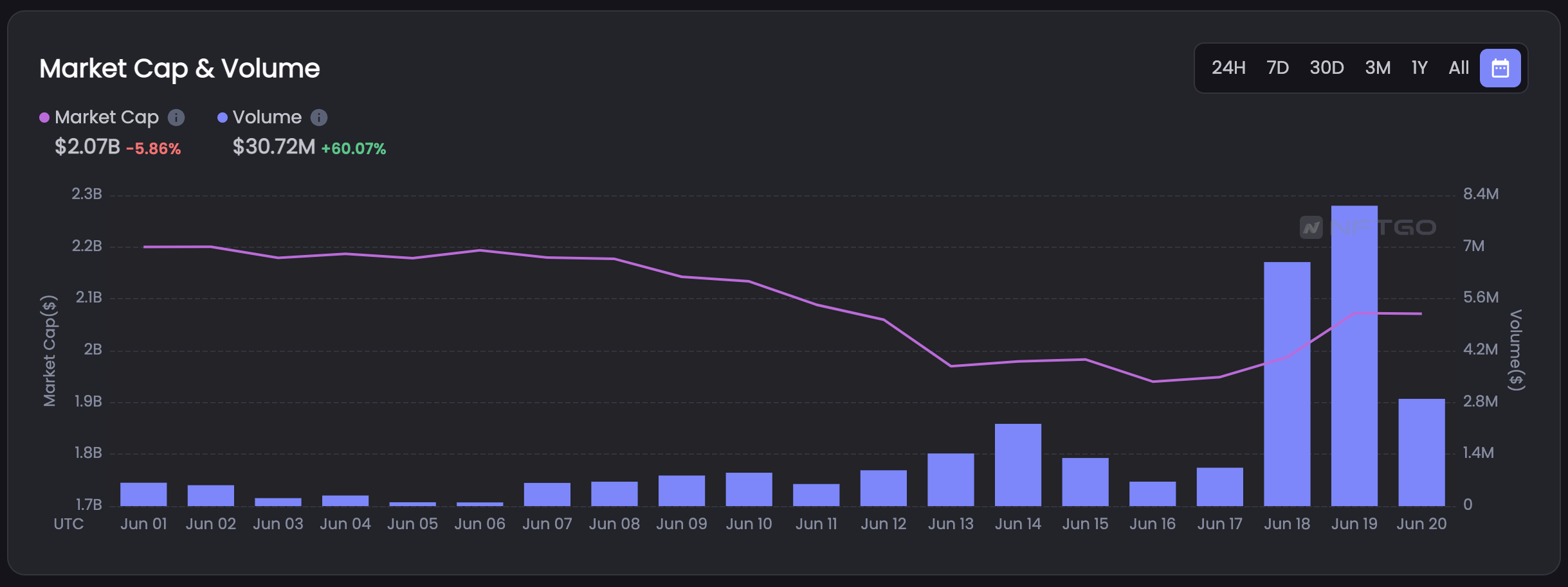 CryptoPunks Market Cap & Volume (in USD) for June 2022